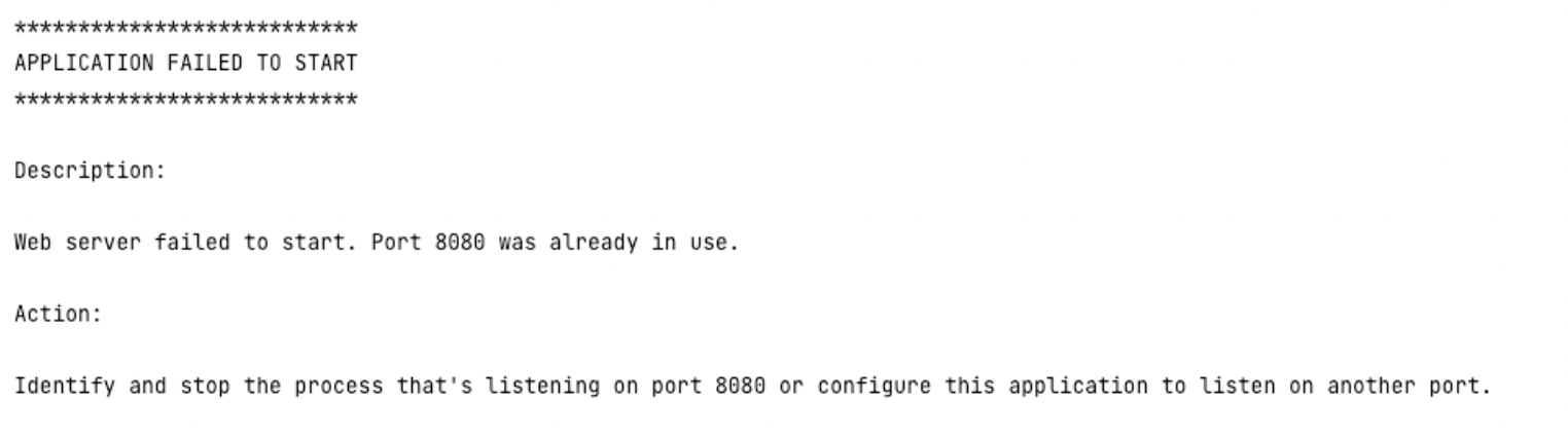오늘은 스프링부트를 시작하려는데 Port 8080 was already in use 오류가 발생했을 때 해결하는 방법에 대해 설명드리겠습니다.