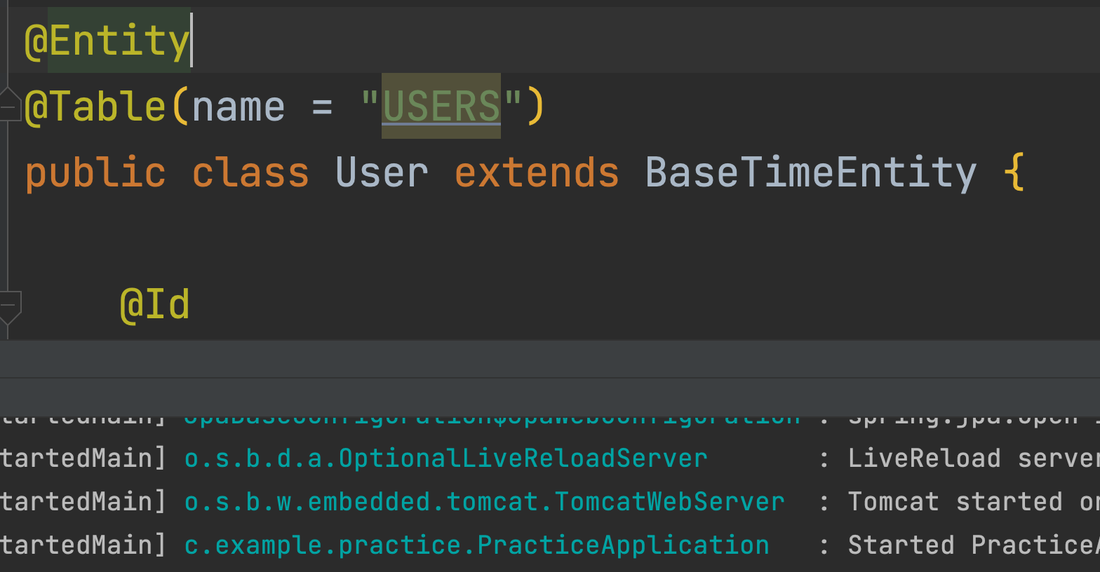 User 엔티티 클래스를 작성하고 실행했더니 아래와 같은 에러가 나타났다.
