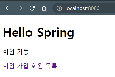 회원 목록 버튼을 누르면 localhost:8080/members로 이동한다.