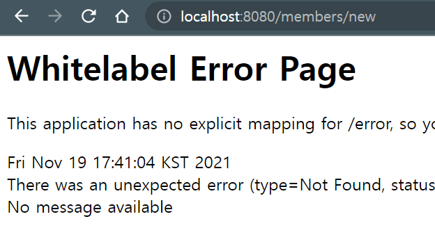 회원 가입 버튼을 누르면 localhost:8080/members/new로 이동한다